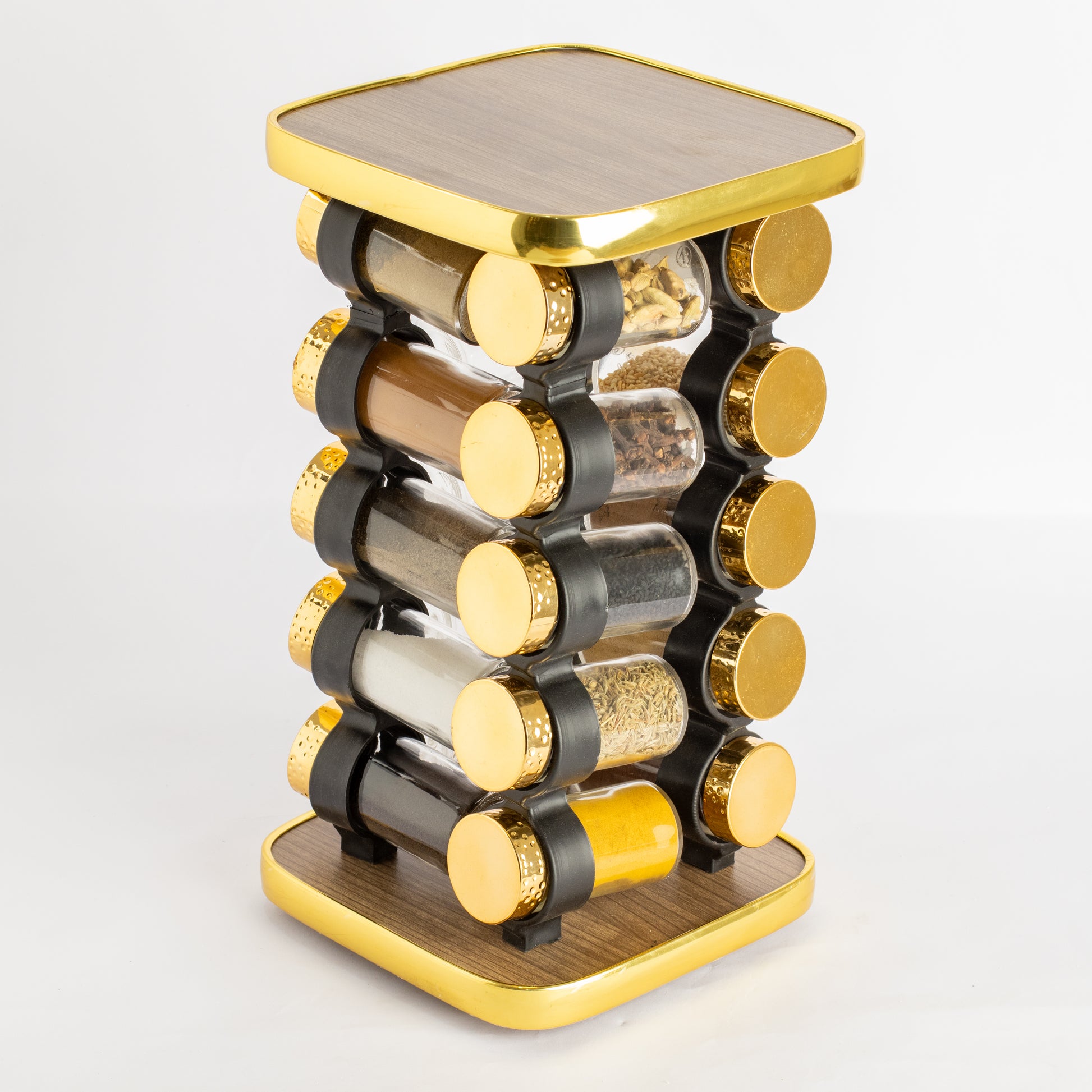 قم بتحديث مطبخك باستخدام رف التوابل المربع الدوار الذهبي الفاخر هذا - المصمم للأناقة والراحة الدائمة.