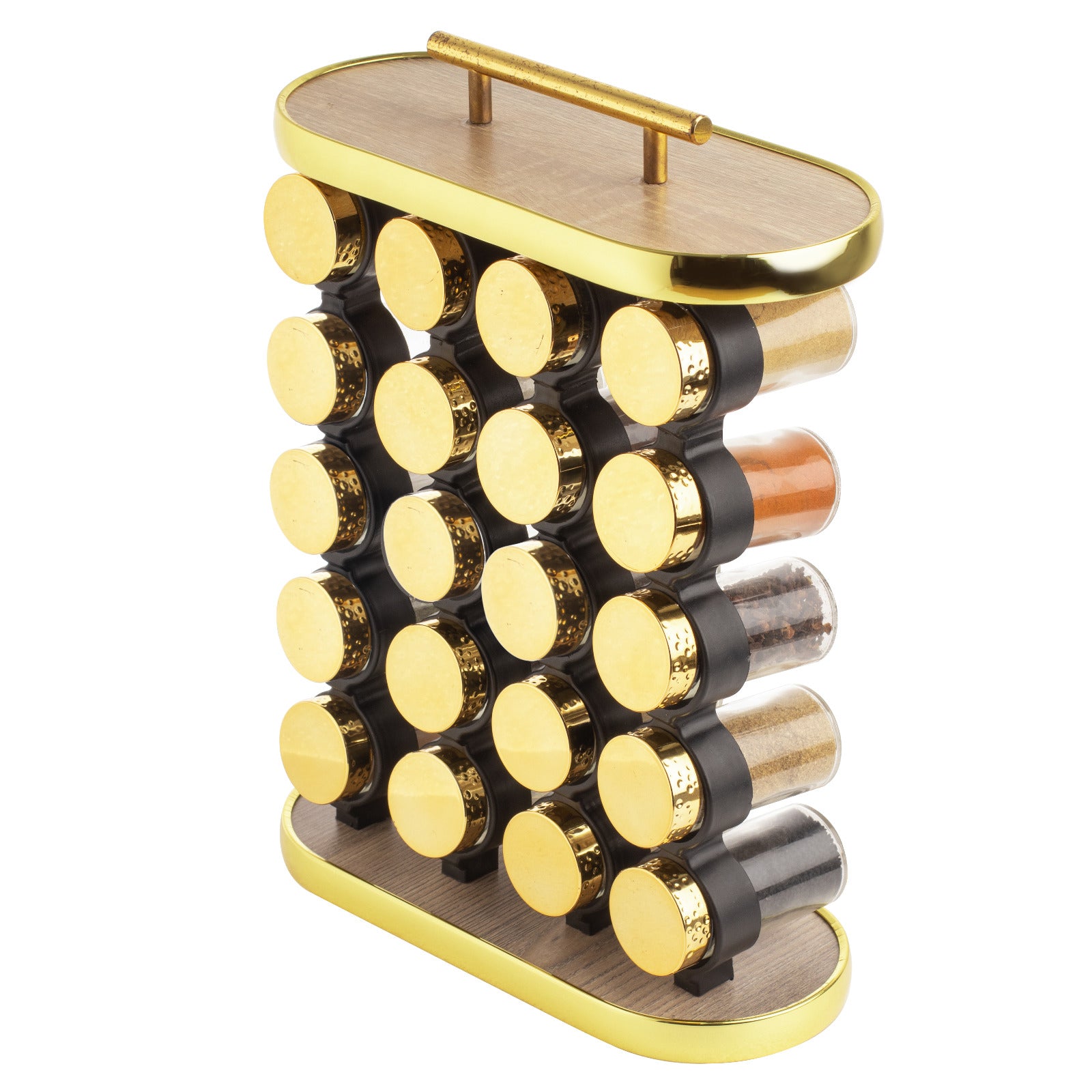 يأتي هذا الستاند الأنيق بتصميم نصف دائري موفّر للمساحة، ويتوفر بـ 12 أو 16 أو 20 برطمان أكريليك فاخر، كل منها مزوّد بغطاء محكم من الستانلس ستيل الذهبي للحفاظ على نكهة التوابل وانتعاشها مع مظهر راقٍ وجذاب.