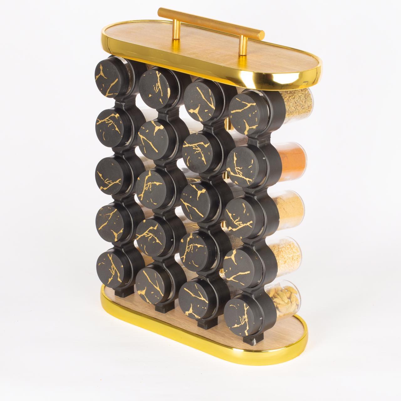 قم بتحديث مطبخك مع مجموعة رفوف التوابل الذهبية – مجموعة الجرار الأكريليكية الفاخرة .